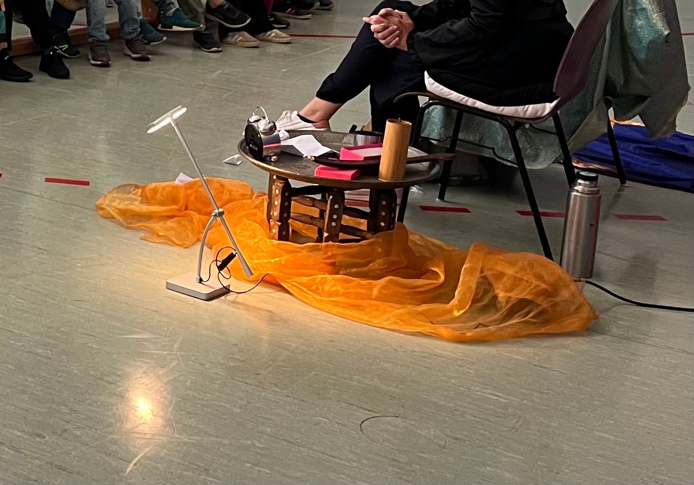 Die Erstklässlerinnen und Erstklässler durften diese Erzählkunst kennenlernen und erleben. Das Theater Grüne Sosse aus Frankfurt lies die Kinder in drei Märchen verschiedener Länder eintauchen. Gesungene Lieder, eine Ukulele und Klanginstrumente begleiteten das Erzähltheater. Zuerst durften die Kinder in einem norwegischen Märchen erfahren, wie das Salz in das Meer kam und lernten Zaubersprüche kennen. In einem schweizer Märchen ging es um den dummen Hans, der besser einmal etwas nachdenken sollte. Zuletzt lernten die Kinder ein afrikanisches Märchen kennen bei dem es um Zusammenhalt und die Notwendigkeit ging, den Namen des Baumes zu kennen, um dessen Früchte abzuernten. Die Schildkröte war es schließlich die es durch ständiges Wiederholen: "Der Baum heißt Ungalli" schaffte, ihren Tierfreunden den Namen zu überbringen.